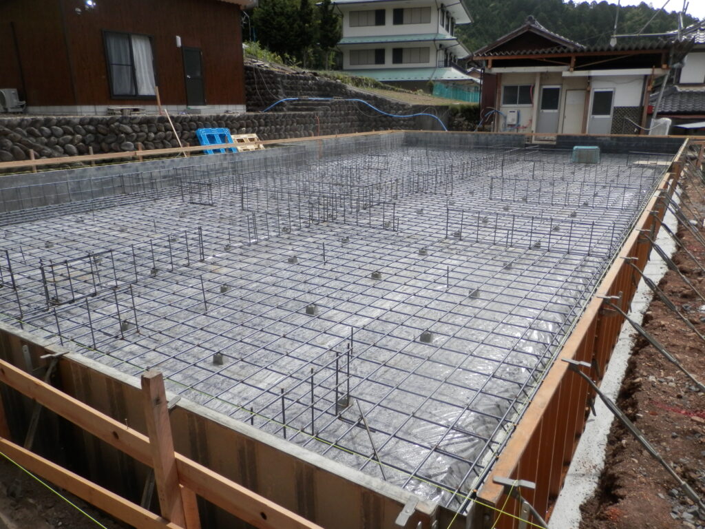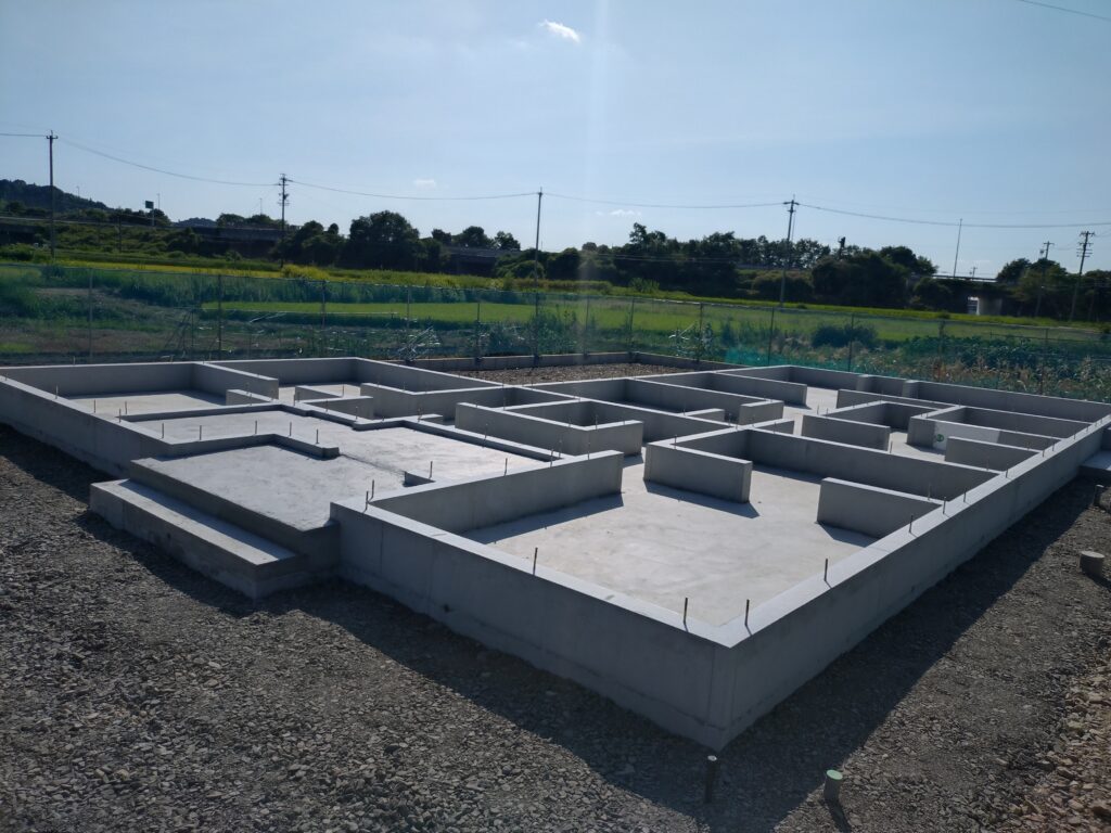 大自然に囲まれた土地に、新築住宅の基礎工事を施工させて頂きました。施工中の工事の流れを写真付きで解説しています。